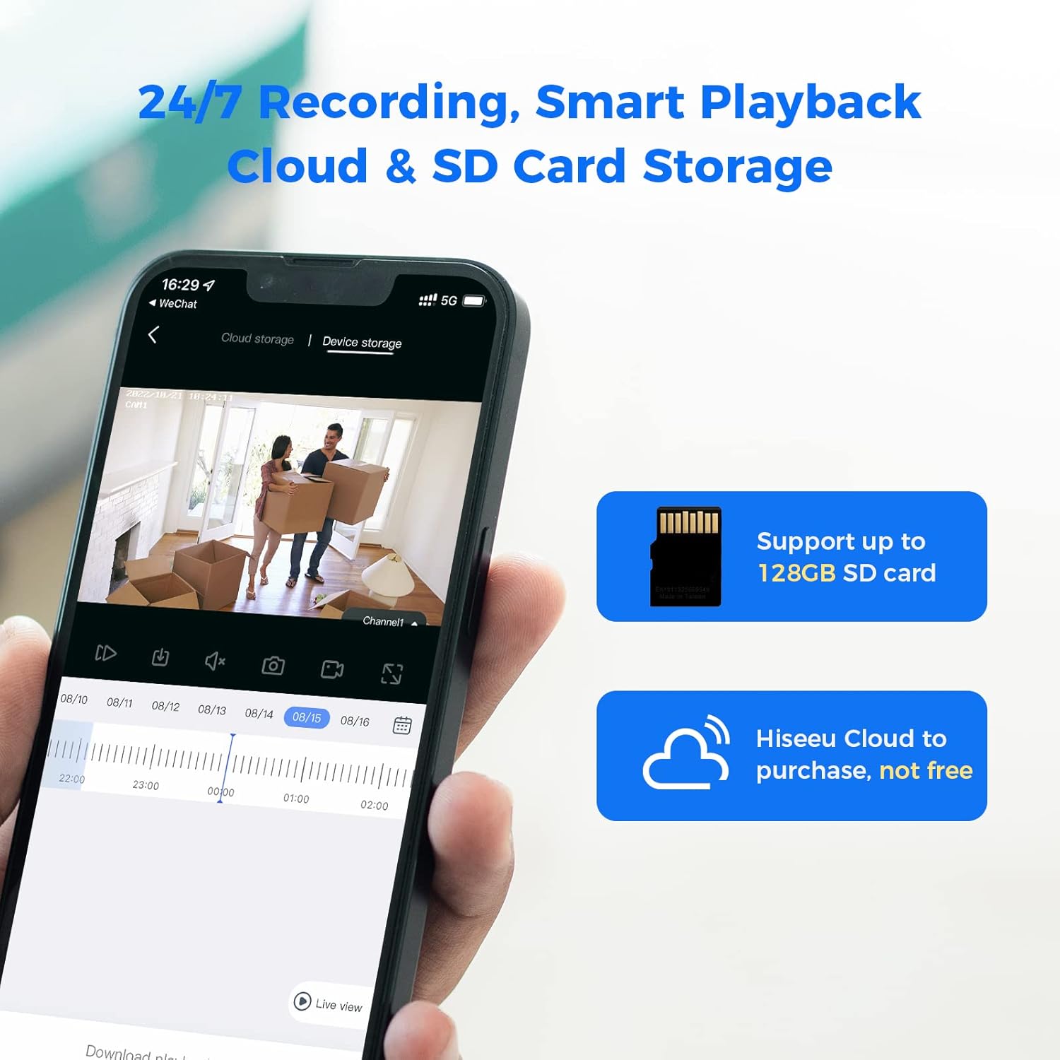 - 💾 Almacenamiento flexible: admite tarjeta SD (hasta 128 GB, no incluida) y opción de almacenamiento en la nube.
