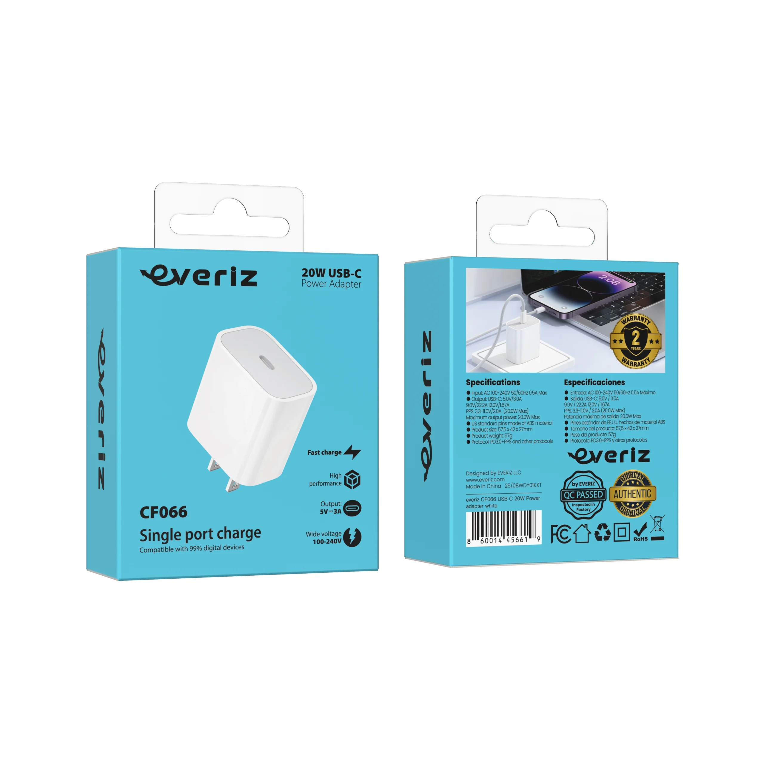 El Everiz CF066 es un cargador rápido de 20W diseñado para ofrecer una carga eficiente, estable y segura en todo momento. Fabricado con componentes seleccionados minuciosamente —incluyendo protectores de voltaje, diodos de seguridad y regulación inteligente— este cargador proporciona un rendimiento confiable sin riesgo de sobrecalentamiento.