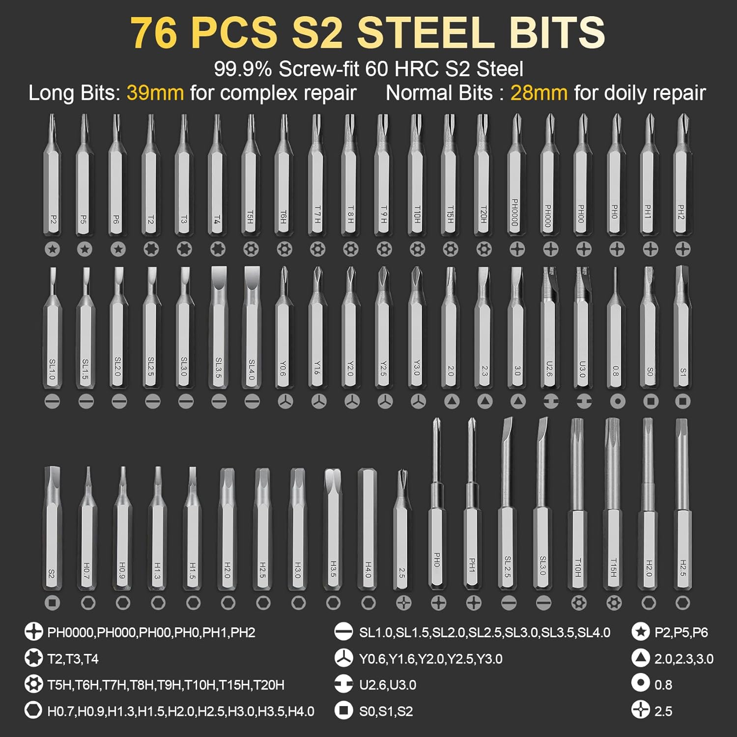 - 🧲 Almacenamiento magnético: mantiene organizadas las 76 puntas y evita pérdidas