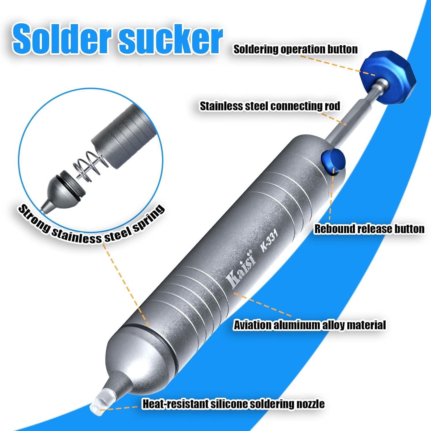 Kaisi – Bomba de Desoldadura Manual | Succión al Vacío Potente | Punta Antibloqueo + Tubo de Silicona Resistente al Calor