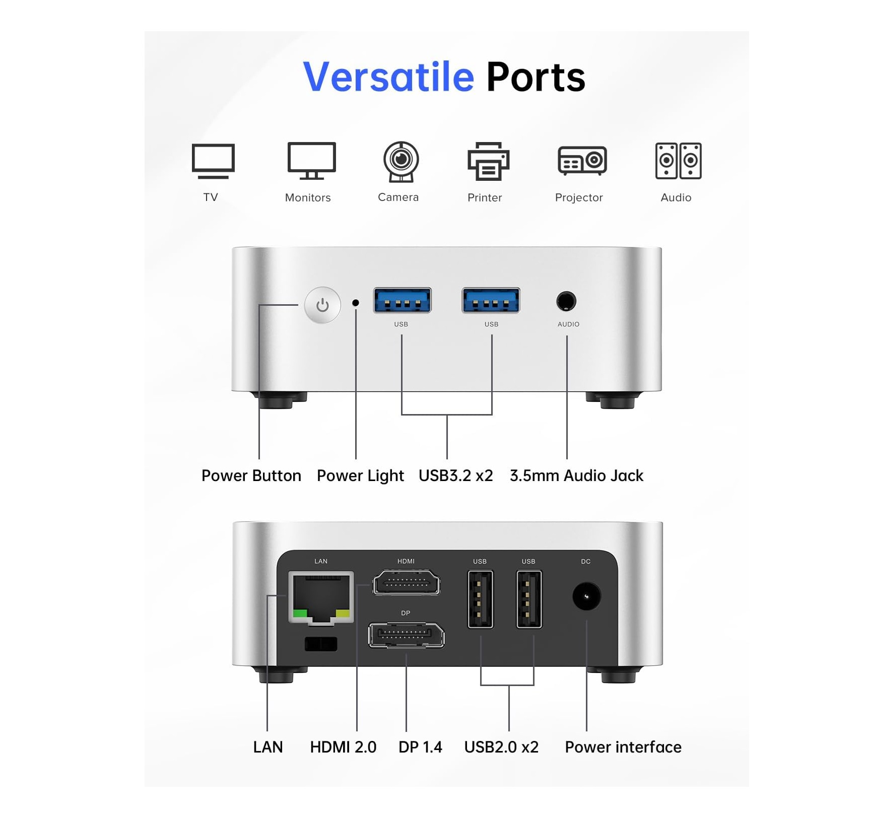 📏 Compacta y portátil, su diseño de aluminio ultra pequeño (3.9 x 3.9 x 1.3 pulgadas) cabe en la palma de la mano. Incluye soporte VESA para montarla detrás del monitor y mantener tu escritorio minimalista.