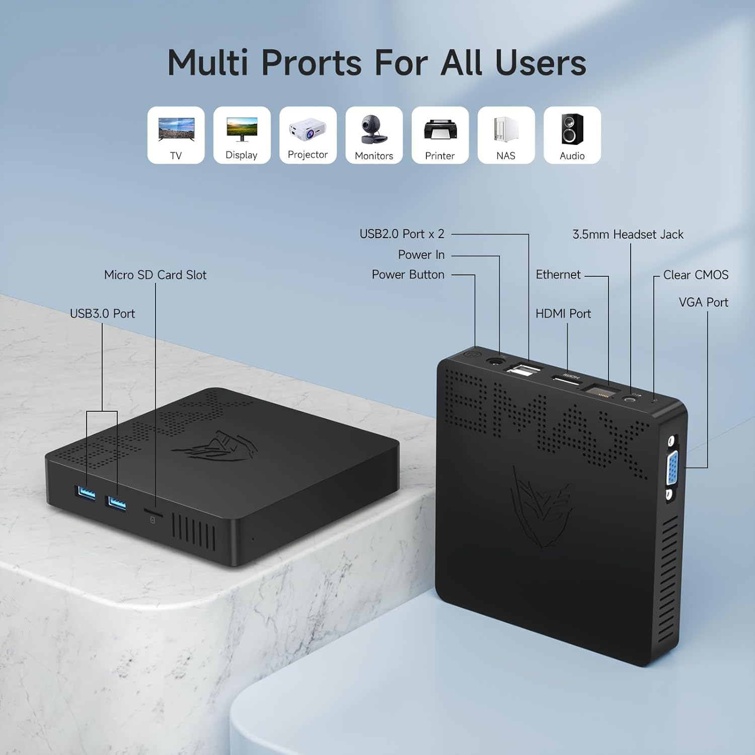 Una computadora potente en tamaño mini. La Bmax B1 Pro es ideal para trabajo, estudios, oficina, entretenimiento o viajes de negocios gracias a su diseño ultraligero y conectividad avanzada.