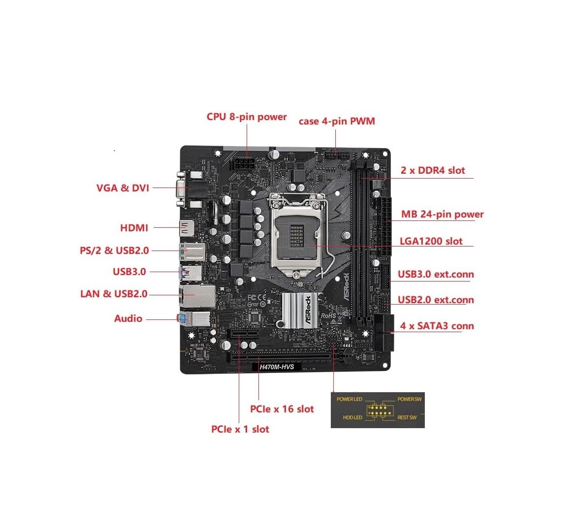 - 1x Motherboard ASRock H470M-HVS Micro-ATX