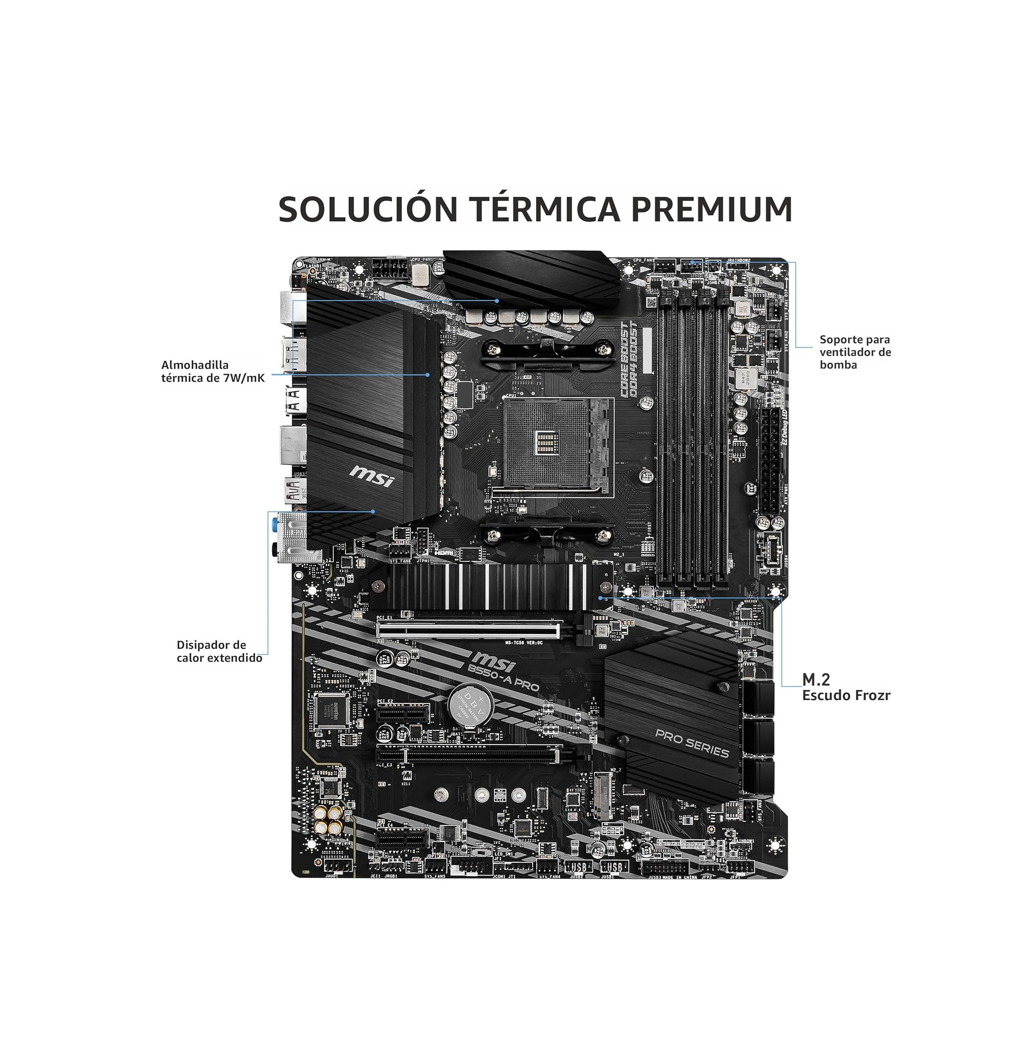 ⚡ La MSI B550-A PRO ProSeries ofrece estabilidad, rendimiento y diseño premium para gamers y profesionales. Con soporte para procesadores AMD Ryzen de 3ª generación y futuros modelos (vía actualización de BIOS), esta placa base garantiza potencia y eficiencia con funciones avanzadas para sistemas modernos. 💻🎮