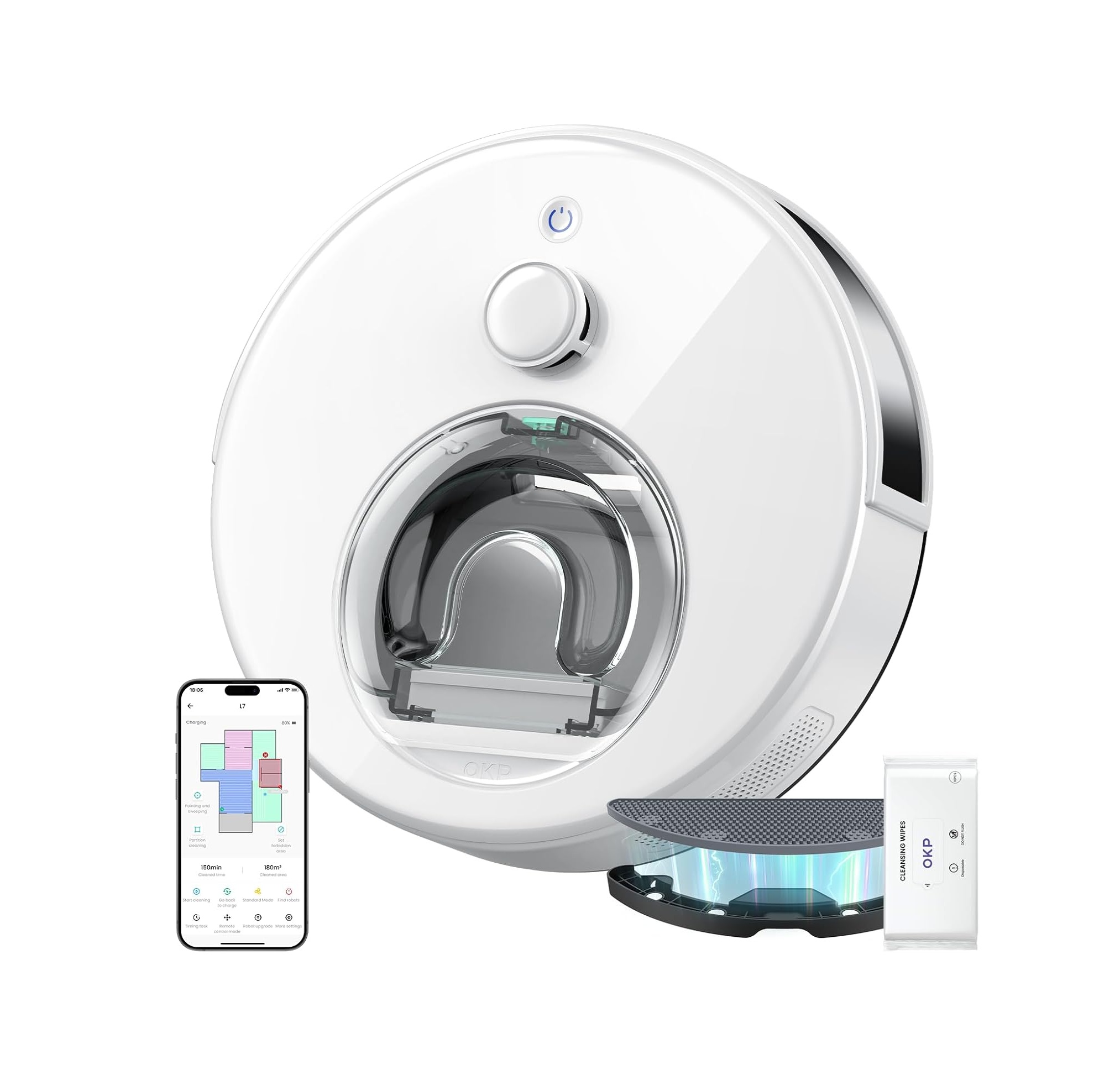 Disfruta de una limpieza eficiente y silenciosa con el robot aspirador OKP L7. Diseñado para hogares con mascotas, niños o múltiples habitaciones, combina tecnología avanzada con un diseño compacto para alcanzar todos los rincones de tu hogar.