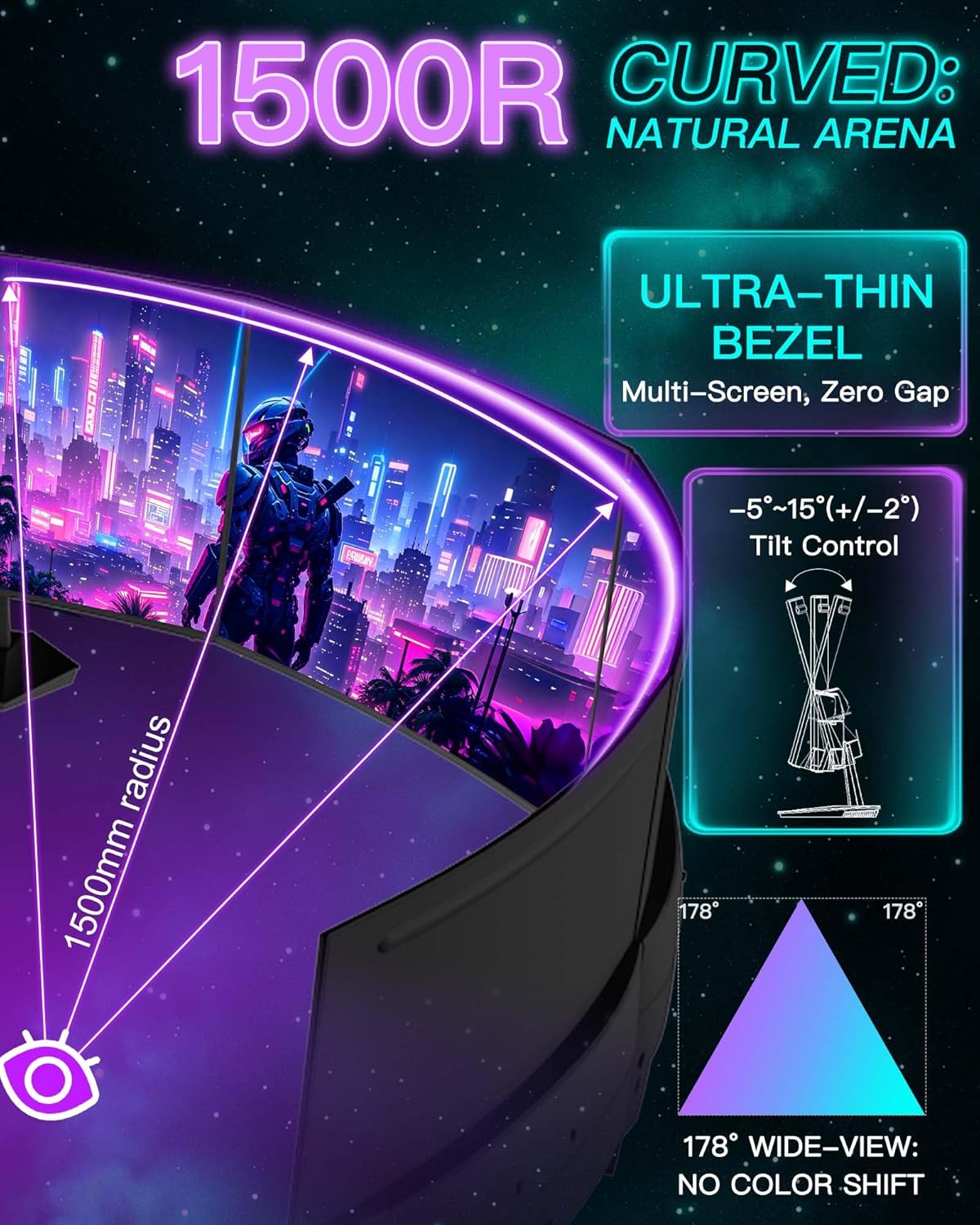 • 🖥️ Diseño inmersivo: pantalla curva 1500R que reduce la fatiga visual y ofrece una experiencia panorámica envolvente.