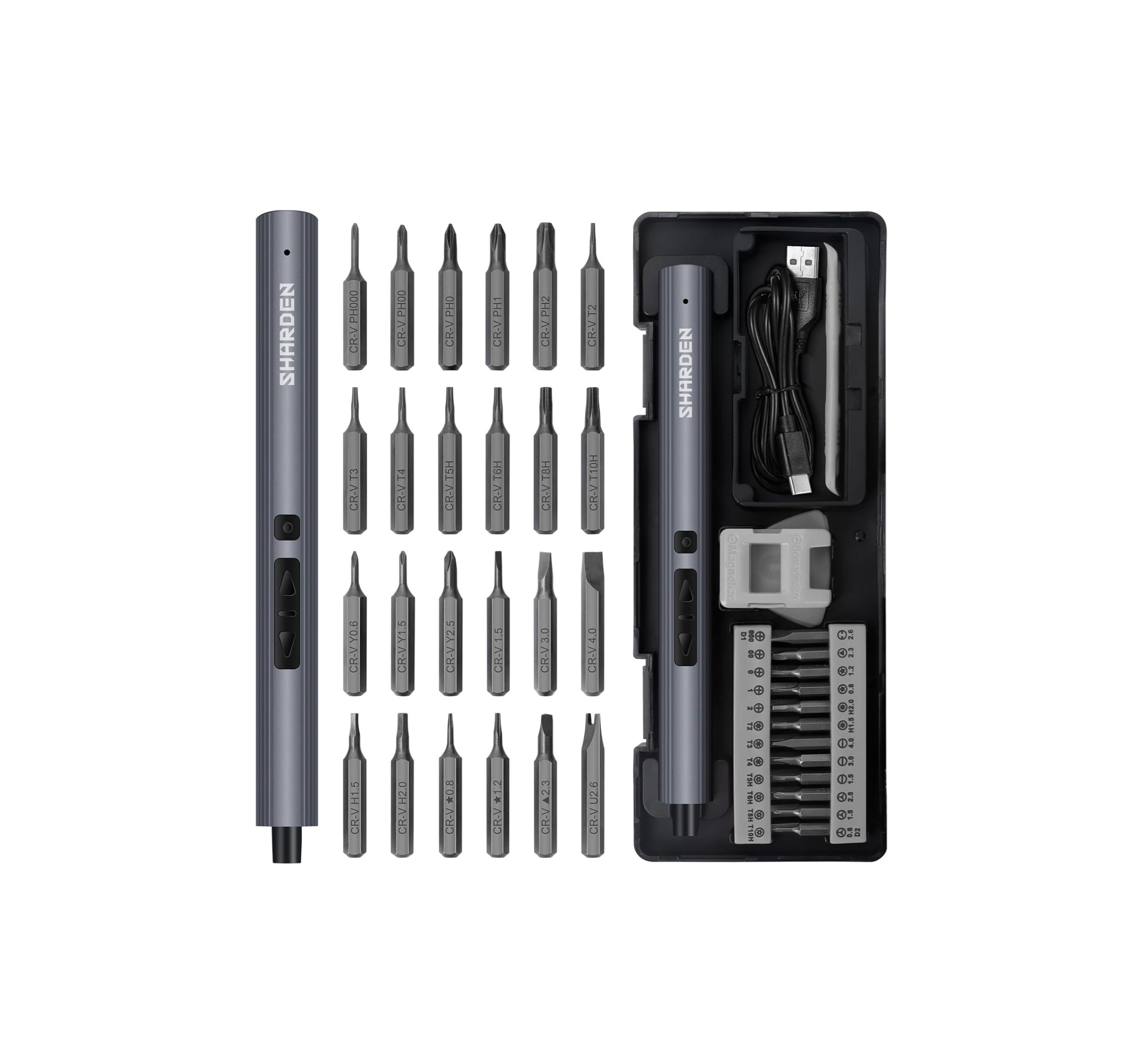 SHARDEN Mini Destornillador Eléctrico 29 en 1 – Kit de Precisión con 24 Puntas Magnéticas