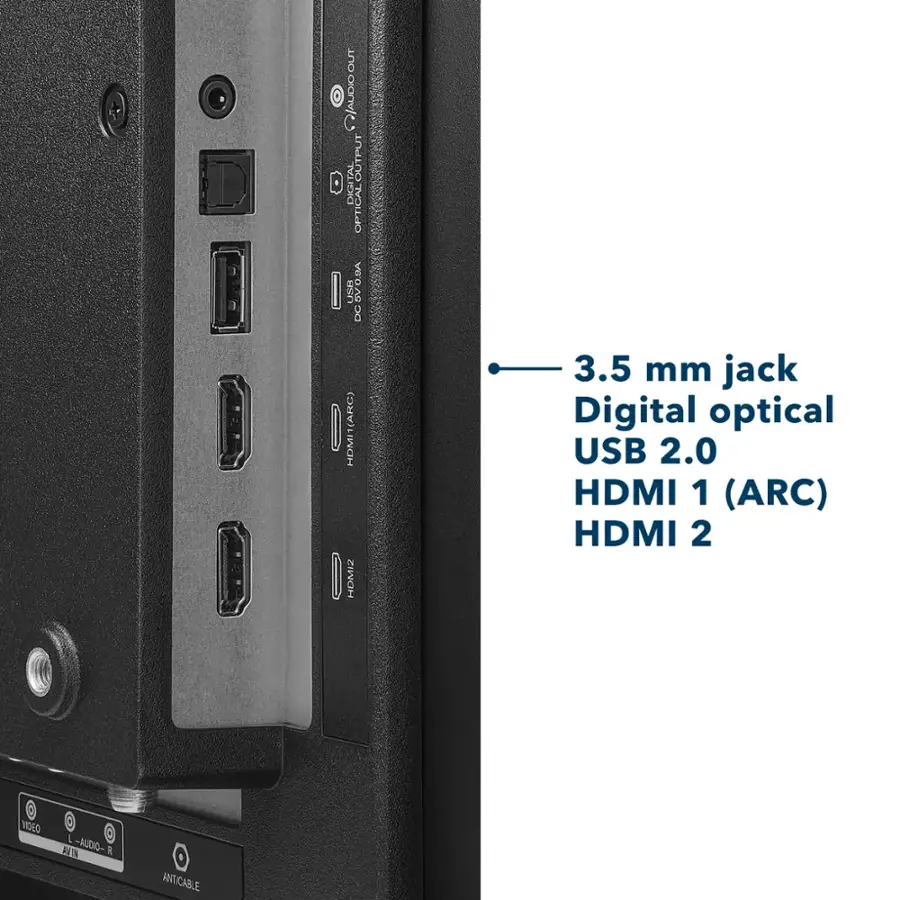 • 🔌 Puertos de entrada: 2x HDMI, 1x USB, entrada compuesta, salida de audio óptica y jack 3.5mm.