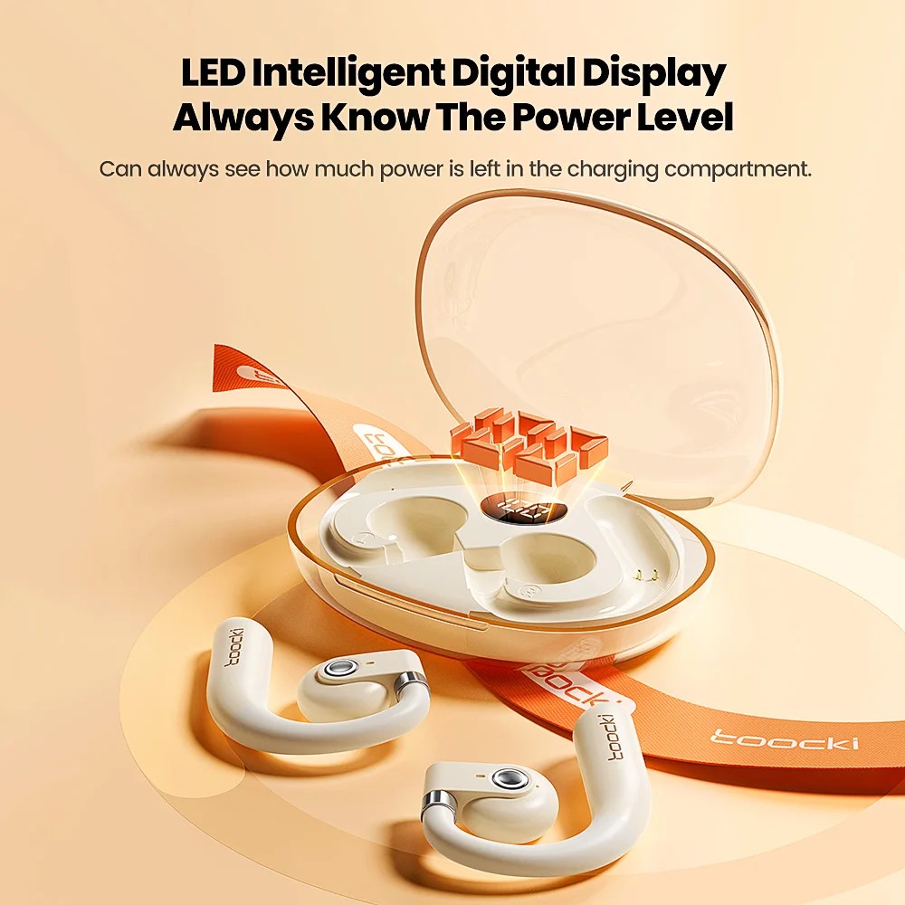 Toocki OWS Bluetooth 5.3 te ofrece sonido envolvente, diseño ergonómico y una pantalla LED integrada para controlar tu música mientras haces deporte. ¡Diseñados para moverte sin límites!